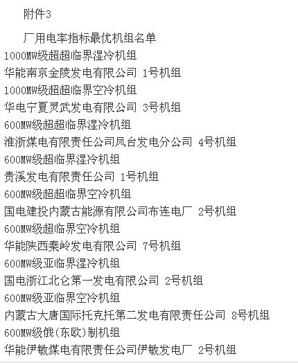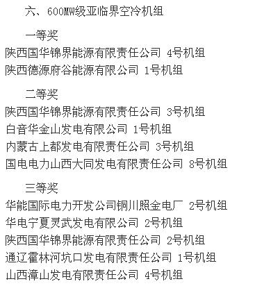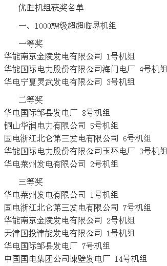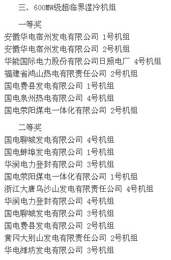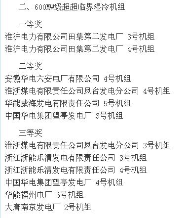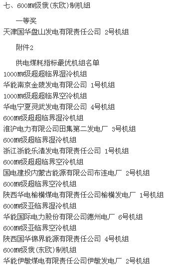 2015全國火電600MW級機(jī)組年度競賽結(jié)果